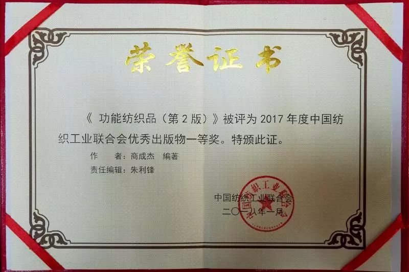 《功能紡織品(第2版)》被評為2017年度中國紡織工業(yè)聯(lián)合會優(yōu)秀出版物一等獎!